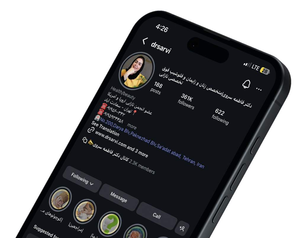 با دنبال کردن صفحه اینستاگرام دکتر سروی میتوانید از ویدیوهای آموزشی و همچنین مشاوره رایگان از طریق ارسال پیام در دایرکت اینستاگرام بـهــره مند شوید.
